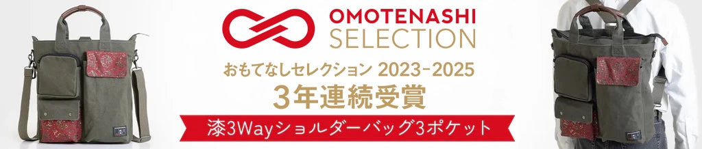 この度、「おもてなしセレクション2023-2024」に引続き「おもてなしセレクション2025」にも漆3WAYショルダーバッグが受賞いたしました。