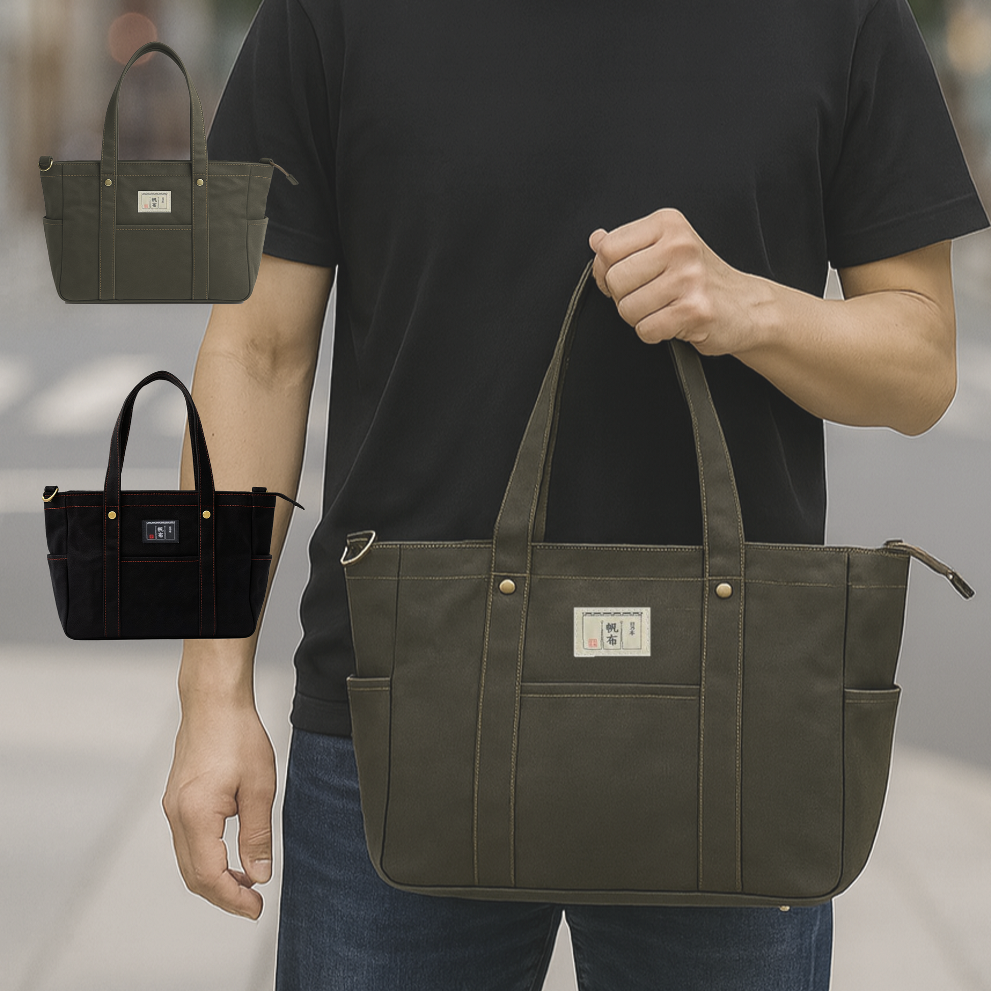 実用性とデザイン性を兼ね備えた帆布素材のトートバッグです。