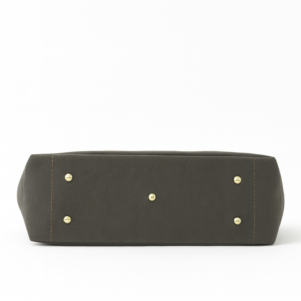 底面には金属製の底鋲が付いているため、直置きしても汚れにくく、型崩れを防ぎます。