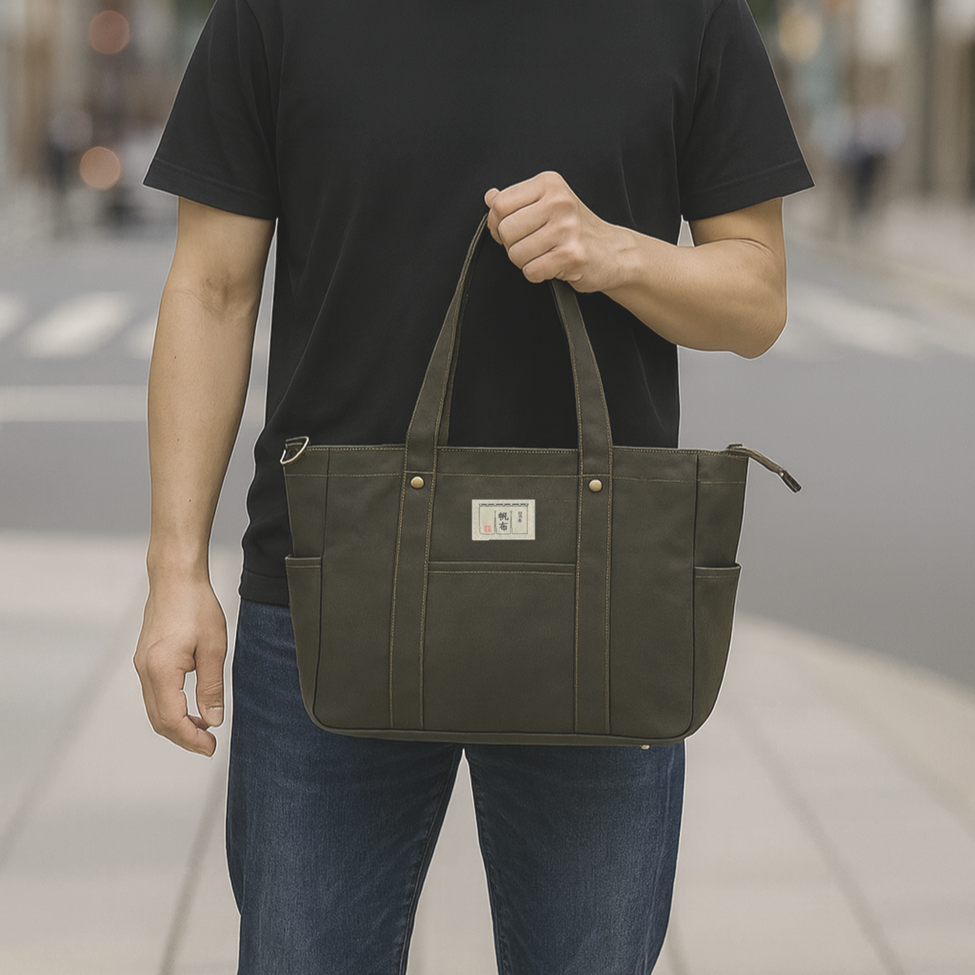 頑丈さ・機能性・デザイン性を兼ね備えた万能型トートバッグといえます。