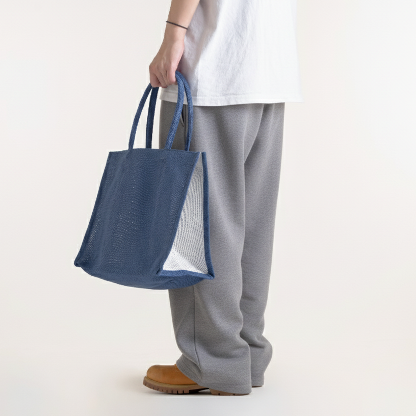 丸持ち手 コットンメッシュトート